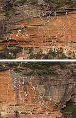 Adam Ondra su Sneaky Old Fox (34) link-up (che combin Fantastic Mr Fox, 33, con la fine di Grey Area, 33).