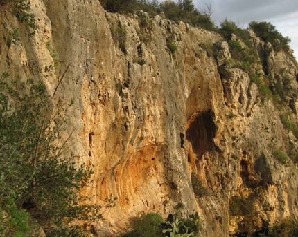 | Divertente via varia su parete articolata, la partenza. Primi due spit in comune con la via successiva, poi và a sinistra ed è quindi indipendente. | ||||
