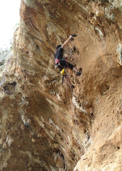 | Bel tiro atletico che affronta uno strapiombo ben concrezionato. | ||||
