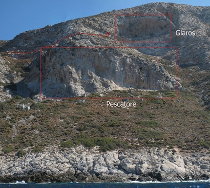 Located on the tiny and idyllic island of Telendos immediately opposite Kalymnos, Pescatore is a new sector with 25 routes from 5b+ to 8a+ on a smooth 30m wall charcaterised by numerous large stalactites and tufas. The wild beauty of the landscape by the sea offers unforgettable views to Leros and the coast of Kalymnos close to Emporios, and the climbing is rendered even more fascinating by the lack of immediate contact with homes and civilisation.