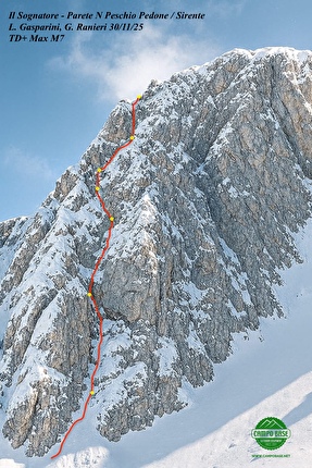 Ballo Corallo - Monte MonacoBallo Corallo was established ground-up on the prominent tower of Monte Monaco's east face, between the routes Fratelli Titt and Sogni d'Oro on the left and Palma Nana on the right. Seven pitches with difficulties up to 7a+...