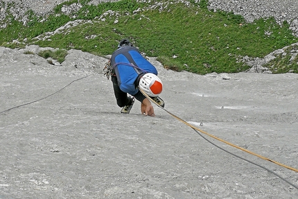 Bepino was my grandfather, a darn good grandfather, composed and youthful. We were very close, he has always there for me when I needed him and he was always keen and happy to help out. I learned a lot from him and although he’s no longer with us, I’ll still learn a lot from him; he’ s alive in all those who loved him. While climbing this route we felt his presence deep within us, with his mild manner and wise words of support. Once I reached the top with my father and my uncle, we hugged each other, and thanked him for having been there with us.