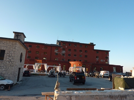 The rock lets itself be climbed, the holds are good, the footholds rough, pegs in just the right place and cracks perfectly suited for Friends. We're the only party on this sunny face today and with the usual “on belay, climb, off belay” we make our way upwards. The summit is the Cima del Gran Sasso, deserted in summer and bustling with activity in summer, so many people, so many colors, so many thoughts... we descend to the "Duca degli Abruzzi" hut where Federica and the children are waiting for me. Live music, beer, so many different accents... and what a unique day!