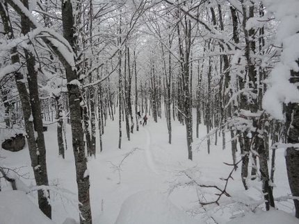- take the lift to "Madonnina" at 2000mt, then with skis on follow the Arapietra ridge, continue past the "Albergo Diruto" (a mountain hut still in construction) and continue along the ridge on the West Face (usually you can follow a beaten track). Reach the road at Cima Alt and follow this west. After an obvious hairpin bend left reach another hairpin bend which turns right: follow the path through the forest from here, via the red and white tape markers.