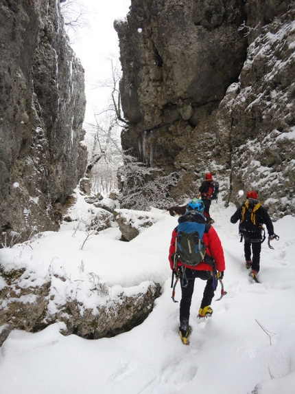 NB A number of new routes have recently been bolted for the "Extreme Rock & Ice" meeting, which aims at promoting not only this sport but also this great little drytooling crag in the Abruzzo region.