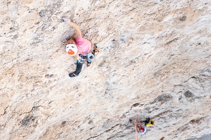 Established by Alexander Huber rope-solo over a period of four days in winter 1999, the route was freed by the German climber in 2001 with max difficulties in the region of 8b+/c. The route immediately became a coveted test for many of the best; the first female ascent dates back to 2013 and was carried out by Sasha DiGiulian, while two years later Barbara Zangerl checked in with the second female ascent.