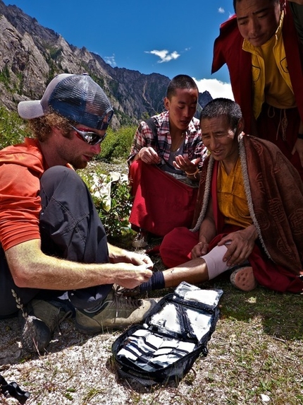 In fall 2012 Anderson and Yi set their sights on climbing Kemailong, located several valleys to the north-east of Mt Genyen 20,354ft, the area’s highest peak. The expedition almost ground to halt in the town of Lamaya when the horse packers discovered Anderson’s and Yi’s climbing equipment. The problem did not evolve around permit issues or the peak being considered sacred, it was about self preservation. In 2006, Charlie Fowler and Christine Boskoff disappeared in the Shaluli Shan Range. Before the bodies of Fowler and Boskoff were discovered in avalanche debris on the slopes of Genyen, the Chinese authorities had imprisoned several of the Lamaya horse packers merely on the suspicion that they had something to with the Americans disappearance. As a result, six years later, the horse packers were still fearful of helping climbers. To resolve the issue, Yi and Anderson wrote, signed and finger printed a “waiver” releasing the horse packers from any responsibility if they failed to return from Kemailong.