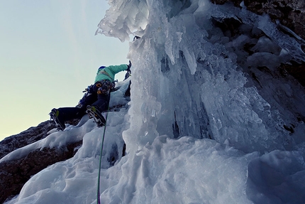 The ascent is a repeat of Selvaggia sorte with some important new variations, and it came about after further repeats across the Dolomites. On 19/12/2018 the duo climbed Jumbo jet via its direct start, rarely repeated as this seldomly forms, while on 20/12/2018 they climbed Zauberflöte and added a variation on pitch 3 they called Papageno.