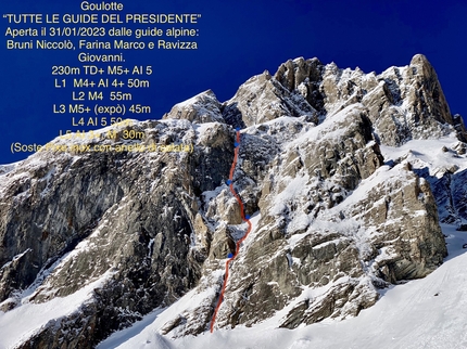 The result is 'Tutte le Guide del Presidente' and 'Sento puzza di fuoco', two amazing winter climbs just a stone's throw from the Piccolo San Bernardo pass, below Punta Tormotta in the Barmette valley