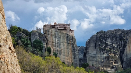 I was particularly impressed by some towers above the village of Kalambaka and I promptly asked Vangelis if it was allowed to establish bolt-protected routes here, since it seemed rather unlikely to be able to climb them with other means of protection. He answered yes, as long as one complied with the local ethics, ie, ground-up, and no bolting on abseil... At this point it's worth specifying that Meteora is a pocket where some Saxon "ethics" still survive, and of which the locals are very proud of. In short, it is one of those places where you can't just do what you want, but you have to comply by following the age-old motto "I don't get it, but I'll accept it." ;-)
