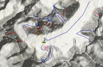 The Final Frontier (V/3-4, 1100 m) follows the most obvious snow and ice line in the area to the corniced summit. This route was awfully exhausting due to deep powder snow for the first, easier angled part of climb up to 50º (100m to bergschrund + 200m to ice). After the initial slopes, 3 pitches of hard, black ice took Grega Ažman and myself to the upper part of the route, simul-climbing snow and ice up to 65º with the biggest threat coming from the sun heating the snow loaded slopes and a large, family-sized-house cornice overhanging above the line of the route. Grega and Anže summited this new peak in deteriorating weather naming it Freeapproved peak (2709 m). The party simul-downclimbed most of the route except for ice pitches which were abseiled on V-threads.