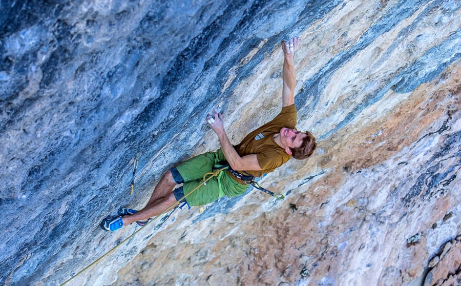 Seb Bouin making the first repeat of Mamichula, the 9b freed in 2017 by Adam Ondra at Oliana in Spain