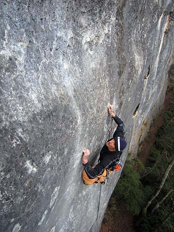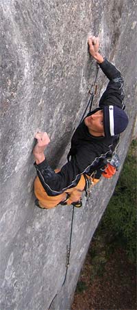 And this is not dissimilar to last Friday's attempts (two each) which removed Sky and Manolo from their "blood bath" of doubts. On the first round Riccardo Scarian immediately felt the route was his, he was already high and close to the finish. He thought he'd done it and... this distraction cost him dearly, down he flew, only to start all over again. The great rattle snake slab had found another victim... Now it was Manolo's turn, but his spirits weren't high as one of his fingers was tweaked, yet another problem to add to his long lost of injuries. So he didn't know how, and if, he'd climb through the crux: a monodoigt which had to be climbed with that injured finger. The first attempt was a test therefore and also the solution to the enigma. "If I caress the holds instead of pulling and squeezing the life out of them, if I trust in all my balance, then perhaps I can do it."