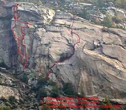 | In mid-October Jean-François Beaulieu from Canada pinkpointed an old aid project, La Zébrée at Mont-King, Val David, Québec. The 25m trad line takes a beautiful crack line up the pink granite crag, and was first climbed in 1972 by Alain Hénault. Beaulieu pinkpointed the line (climbed free with pre-placed natural protection) on 11 October and put forward the grade 8b+, making it one of the hardest crack climbs in the country. Simon Savard sent us a full report about Beaulieu, La Zébrée and its history. "On October 11th Jean-François Beaulieu from Canada successfully freed La Zébrée, a 25m hand and finger crack that overhangs at roughly 40 degrees and passes through two roofs. He has tentatively rated the route 8b+. The route was led with pre-placed removable protection. Success came after 40 attempts spread over 3 years (25 attempts in 2003). Adding to the difficulty, the route often stays wet, needing at least 4 days without rain before it dries out enough to be attempted. The line was first led as an aid climb in 1972 by Alain Hénault, it is commonly rated A2. Others who have attempted to free climb the route are Louis Babin, Russ Clune, Peter Croft, and François Roy, who came close to linking it at the end of the 80's. At the time, François rated it 8b A0. Jeff is considered one of Canada's strongest climbers. He has freed hard routes such as Les Grands-Galets, Cap-Trinité, Québec (7c+ R, 270m), Le Toît de Ben, Val-David, Québec (7c+). He has also succeeded on several big wall routes, such as the FA of "Nunatak", north face of Mount Asgard, Baffin Island (VII A3+, 1000m, July 2000). FA of "La Colère des Dieux", south face of the Sphinx, Peru, (VII 6a A4, 800m, first route on the South face, January 1st 2003). Some sport routes he has recently freed have been Shame on a Chippa (8a+), Rumney, USA, Razzia (8a+), Orford, Québec, Strict Scrutiny (8b+), Rumney, USA, DarkStar (8b), Rumney USA , Peu (7c+), Orford, Québec . He has also flashed several dry-tooling M10's and is an active routesetter. The route is currently the hardest crack climb in Canada. Jeff hopes to keep training and attempt the route while placing pro on lead. Congradulation Jeff for your perseverance and success. It inspires us!" Simon Savard 2004 |