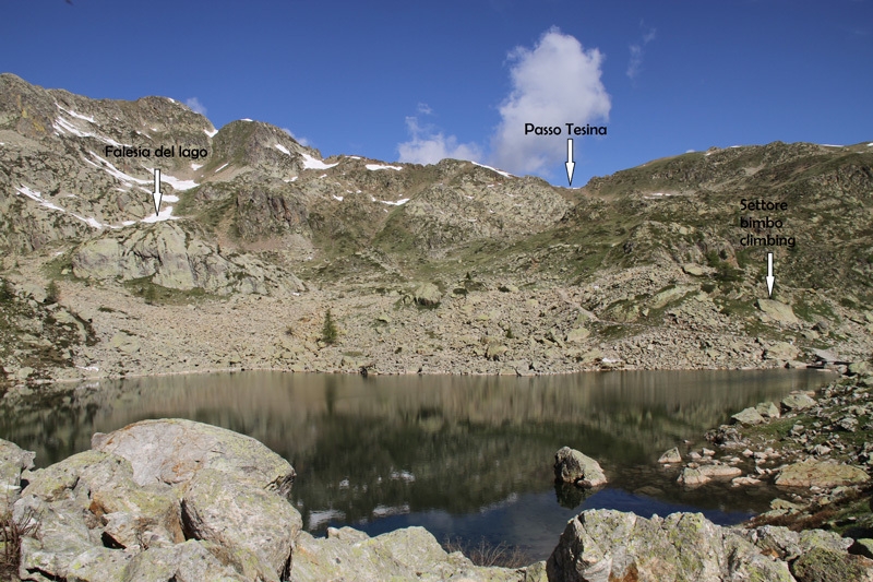 The crag Lago di Sant'Anna and the sector Bimbo Climbing.