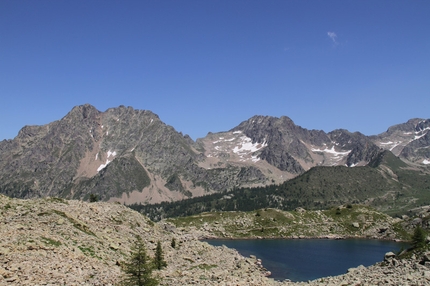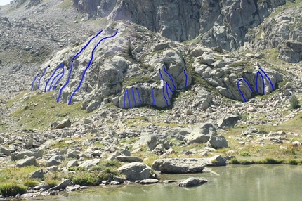 The crag Lago di Sant'Anna is located in NE Italy, close to Sant'Anna di Vinadio in Valle Stura, immersed in a splendid countryside and surrounded by magnificent alpine peaks. The crag is reached by driving past the village Vinadio, famous for its Albertine fort, up along the steep road to an altitude of 2035 metres and the highest sanctuary in Europe, the Santuario di Sant'Anna.
