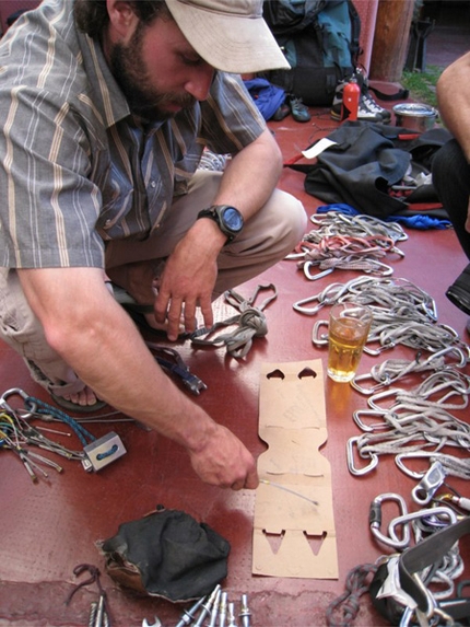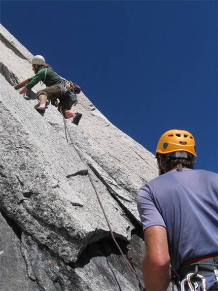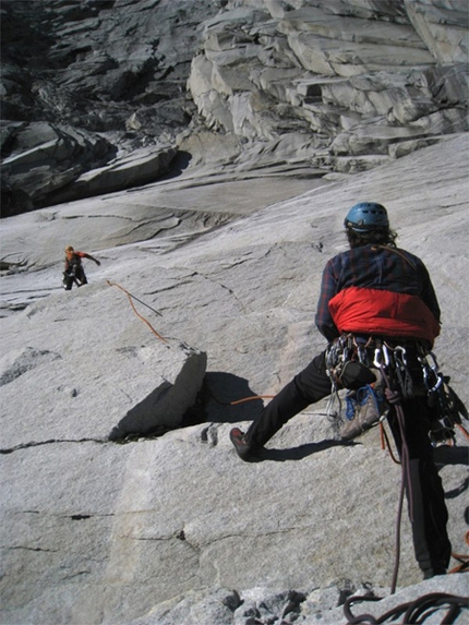 The Canadians however described a striking unclimbed line on the right tower and Beckner, Spaulding and Anderson therefore spent a week hauling gear to the base of this mountain. Their route initially followed a sweeping dihedral that turned out to be the crux of the climb (5.11). From there the team followed a series of cracks on the left side of the tower. When the crack system ended a short pendulum, the only section of aid, provided access to a splitter hand crack and another corner system. Due to the lengthy and complex approach, the trio was caught by darkness four pitches from the top and bivvied on a tiny ledge for the night. Fortunately the weather held and Beckner, Spaulding and Anderson topped out the next morning.