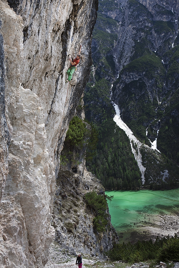 Located at about 1700 meters, the Geierwand crag provides a splendid view down onto lake Dürrensee and the Höhlensteintal. The first climbs were bolted by Cortina-based climber Massimo da Pozzo, I then bolted the others.
