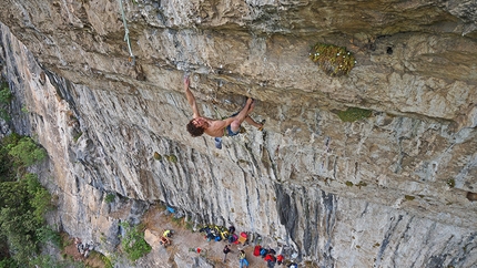 At a later stage I freed the remaining pitches, the second is a solid 7c, which I immediately though could be linked to the first, for obvious reasons of logic and beauty. I tried timidly to do so, but after the onsight by the "Number One", Adam Ondra, and the fact that he believed the grade remained unchanged, I’m currently trying it again with more conviction.
