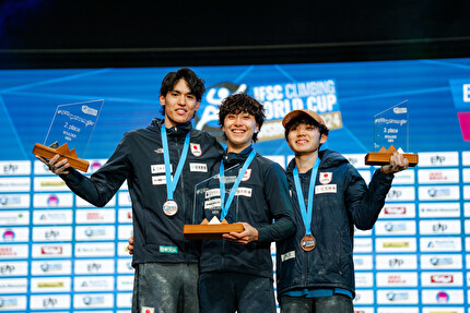This is the third time that the Japanese national team have swept the men’s Boulder podium: first it happened in 2021, also in Innsbruck, with Ogata Yoshiyuki, Narasaki Tomoa, and Fujii Kokoro respectively taking gold, silver, and bronze. The following season, in Seoul, South Korea, Fujii won gold, Narasaki won silver, and Ogata won bronze.