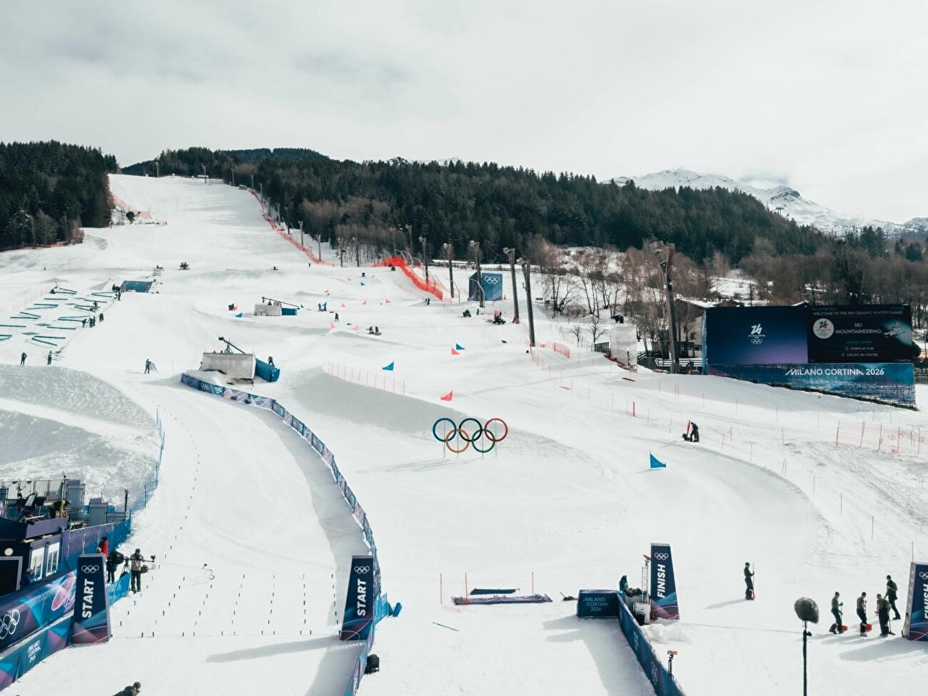 Next, competitors face a 20% slope over a 100-meter section before the final transitions. Skins are removed for the downhill portion, which includes a series of challenging turns, parabolic bends, and jump leading directly to the finish line, where athletes are expected to arrive at high speed.