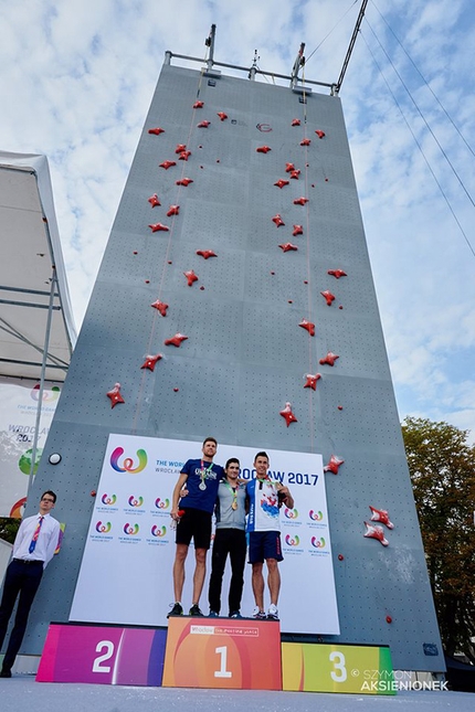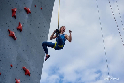 Japan’s Keiichiro Korenaga won the Lead event, climbing to the same hold as Yuki Hada but beating his teammate due to countback to the Semifinals. Canada’s Sean McColl placed third, ahead of Romain Desgranges, Domen Skofic and a superlative Francesco Vettorata; all three fell off the 22nd hold and were split by their Semifinal results. Home favourite Maciej Dobrzanski and Australia’s Campbell Harrison completed the lineup finishing 5th and 6th. In the women’s final the route setters failed to separate the three leading lights, i.e. Belgium’s Anak Verhoeven, Slovenia’s Janja Garnbret and France’s Julia Charnoudie and so countback to the Semis was used once again. They were followed by Jain Kim (4th), Jessica Pilz (5th), Akiyo Noguchi (6th), Mina Markovic (7th) and Claire Buhrfeind (8th).