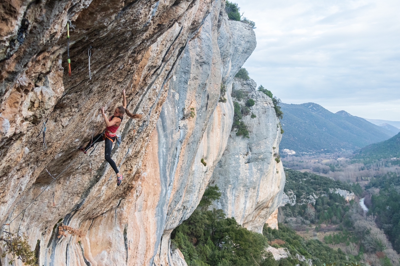 Eva Hammelmüller repeating La ligne claire (8c+) at Saint Léger du Ventoux in France