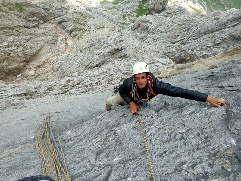 During the first ascent of Gigi La Trottola (IX-, 450m, Alessandro Baù, Claudio Migliorini, Giovanni Zaccaria 2015)