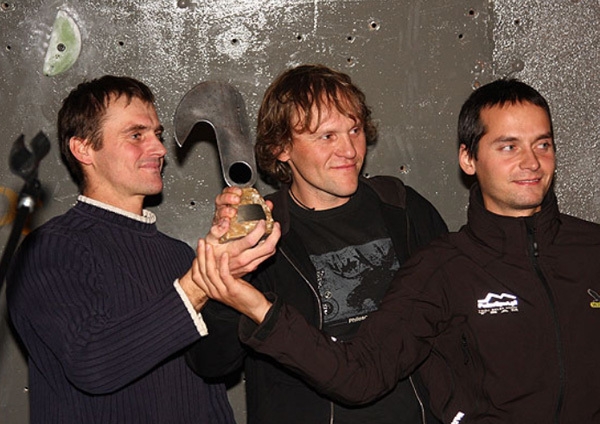 The winners of "Jedynka" – from left: Marcin Michałek, Krzysztof Starek and Wojciech Kozub, Krakow Mountain Festival 2009.