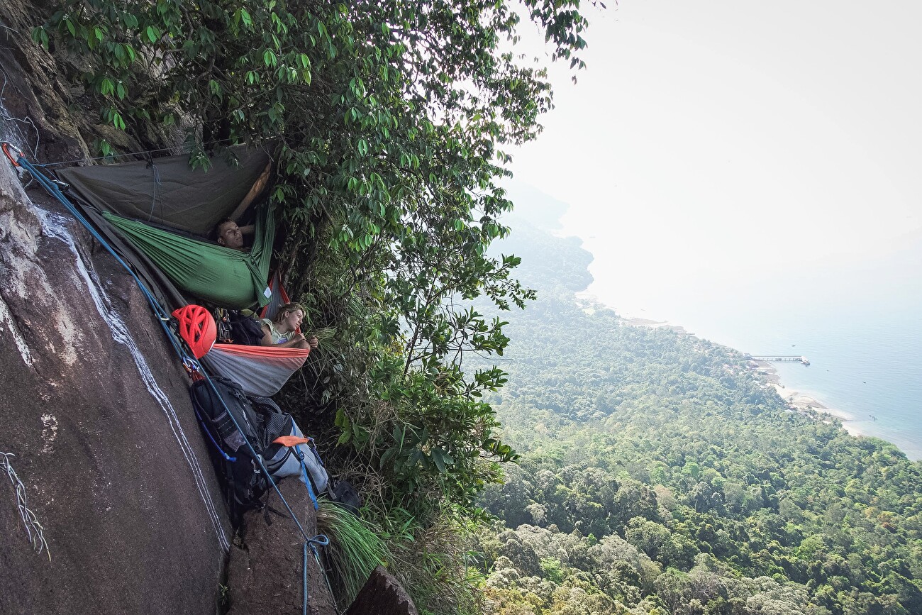 The first ascent of 'Benjo-Delight', Dragon Horns, Tioman Island, Malaysia (Johannes Malchow, Seb Eifler, 2025)