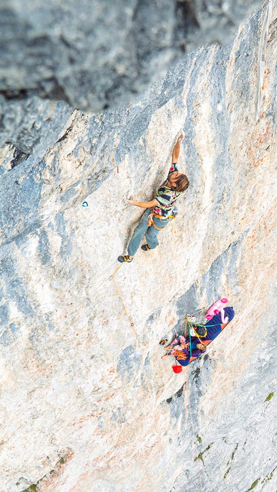 Nico Favresse belayed by Sébastien Berthe climbing Des Kaisers neue Kleider, Wilder Kaiser, Austria