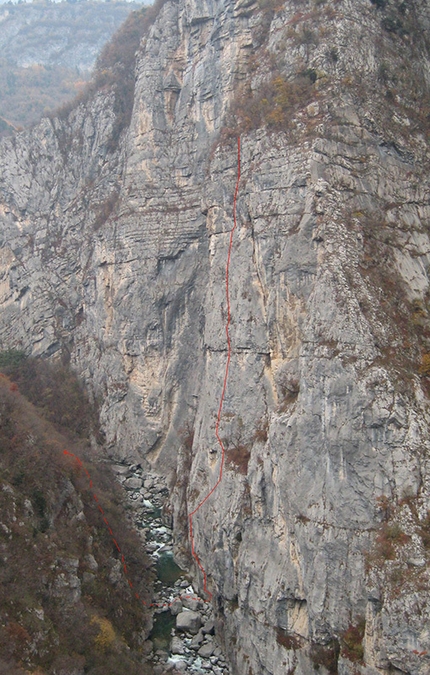 Via del Guerriero, new multi-pitch climb in the Gola del Limarò, Arco In June Francesco Salvaterra and Nicola Binelli made the first ascent of Via del Guerriero (VI+/VIII-/A2 R3), a new route in the Gola del Limarò close to Arco, Trentino - Alto Adige.