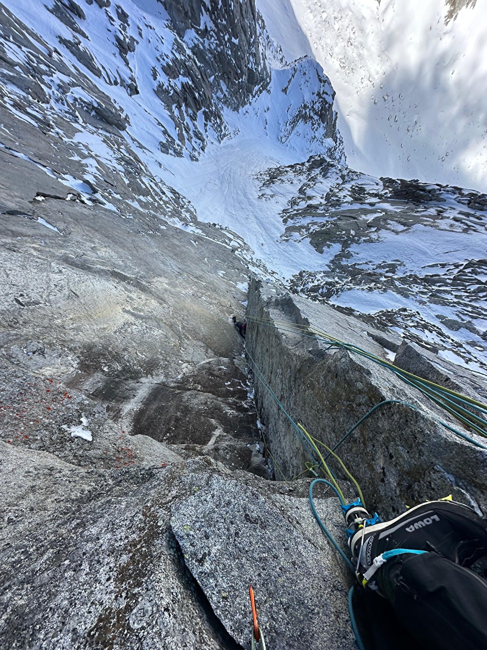 Ines Papert making the first free ascent of 'Lumina' on Wildgall / Monte Collaspro (3273m) in the Rieserferner Group on 10/11/2025