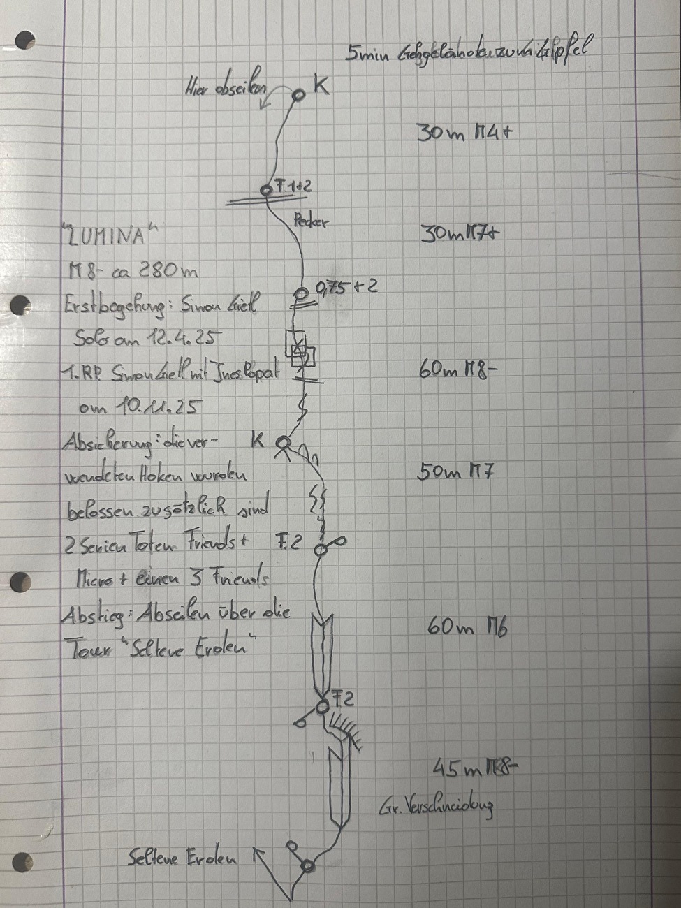 The topo of 'Lumina' on Wildgall / Monte Collaspro (3273m) in the Rieserferner Group (Simon Gietl, Ines Papert 10/11/2025)
