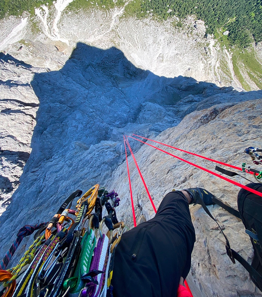 Simon Gietl completing the first ascent of NW Pillar Arête on Peitlerkofel / Sass de Putia, Dolomites (13-14/07/2022)
