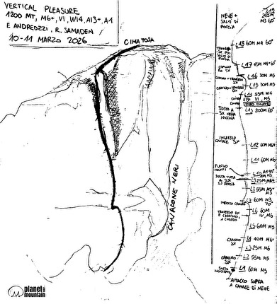 Cima Tosa in the Brenta Dolomites and the route lines of 'Vertical Pleasure' (Ruggero...