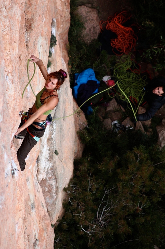 Argyro Papathanasiou climbing El Figot 8b at Siurana, Spain