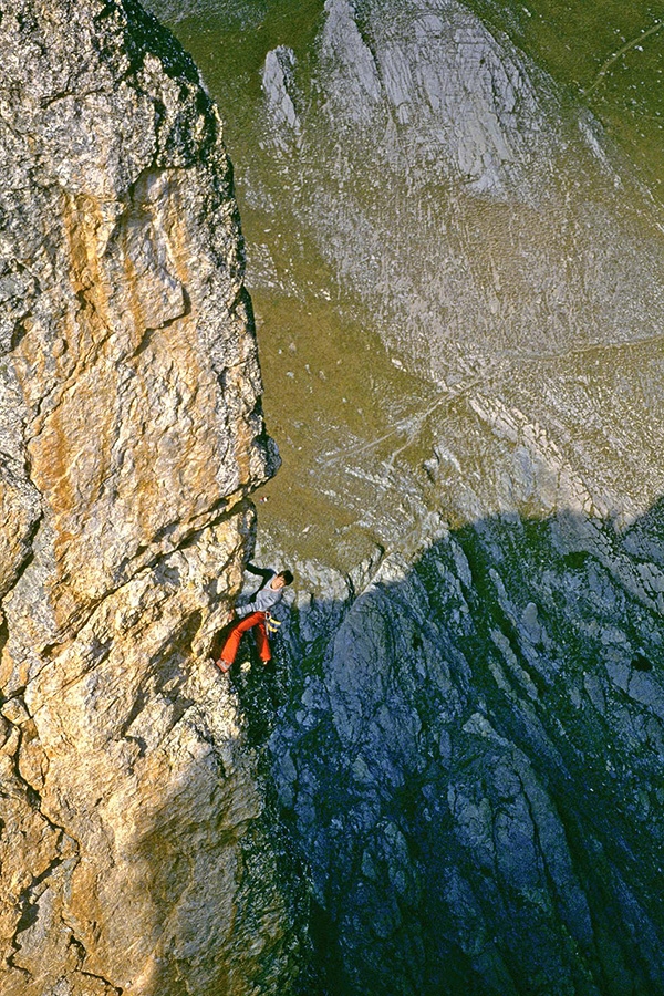 Maurizio Oviglia soloing Torre Castello (Val Maira) in 1983.