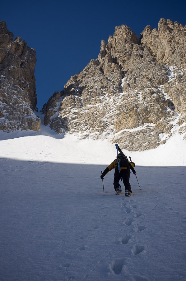 Ascending the Canale Nord forcella Sasso Levante, Langkofel
