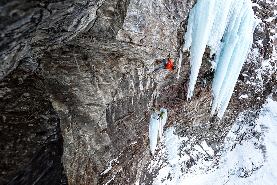 Simon Gietl and Vittorio Messini making the first free ascent of MFG at Rein in Taufers