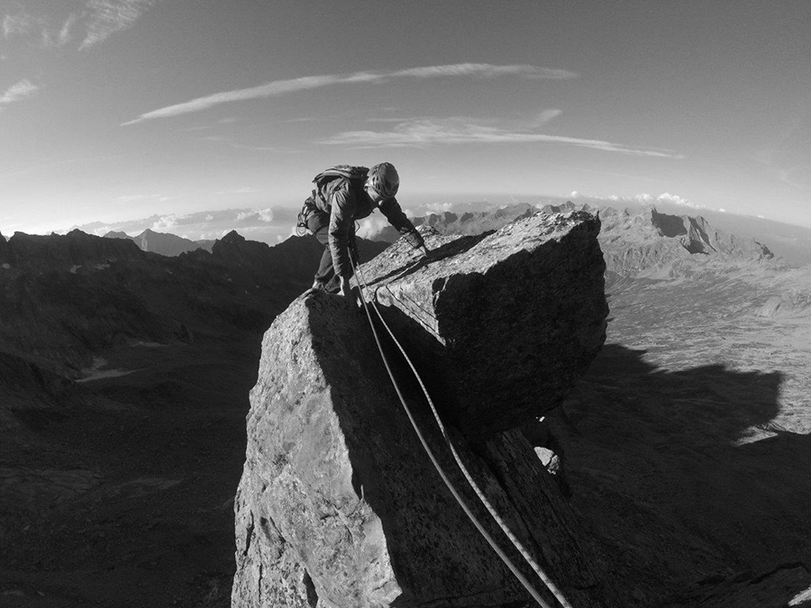 Spigolo Vinci on Cengalo: first rays on sunlight