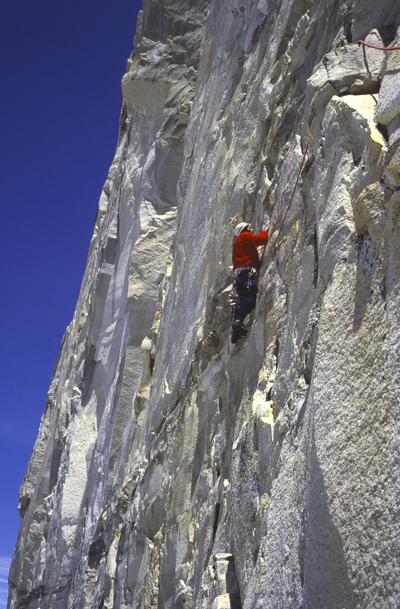 Fabrizio Manoni sullo 'scudo' della parete Nord-Est dello Shivling - Garhwal Himalaya 1986