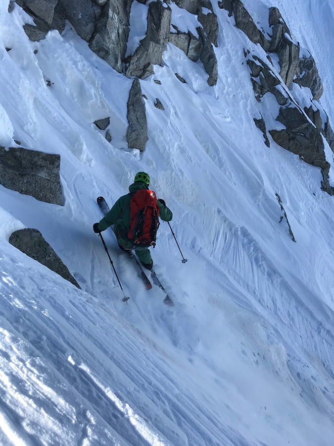 Skiing down Canale dell’Orco on Punta dell’Orco above Val Genova in the Adamello group (Alessandro Beber, Claudio Lanzafame, Marco Maganzini 22/03/2019)