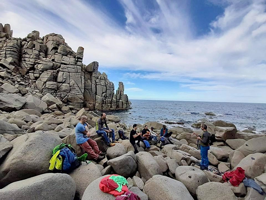 Maurizio Oviglia instructing at Trad day 2020, the trad climbing meeting at Capo Pecora in Sardinia