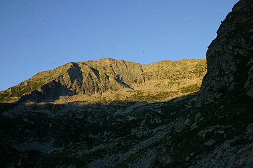 Dawn breaks onto the North Face of Cresta, Biellese Alps Alta Via