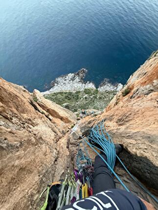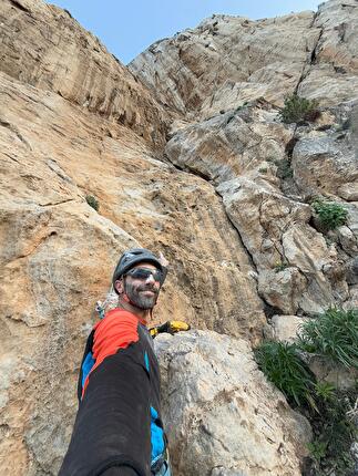 The first ascent of 'Pescatori di sogni', Pizzo della Sella, Monte Gallo, Sicilian Apennines...