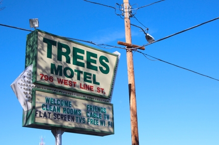 bouldering at Bishop, USA: vintage sign at the Trees Motel