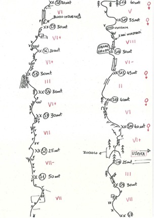 The topo of 'Pinacolada' on Pinnacolo di Maslana, Valbondione, Italy (Cristina Oldrati, Matteo Rivadossi,...