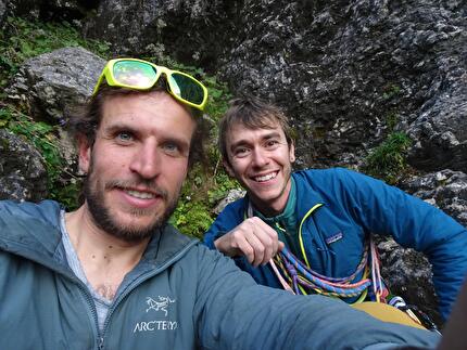 The first ascent of 'Tutto cambia': Thomas Gianola and Lorenzo Toscani after the ascent