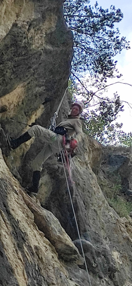 Symon Welfringer and Charles Dubouloz climbing Manitua (7c, 1100m) on the North Face of...